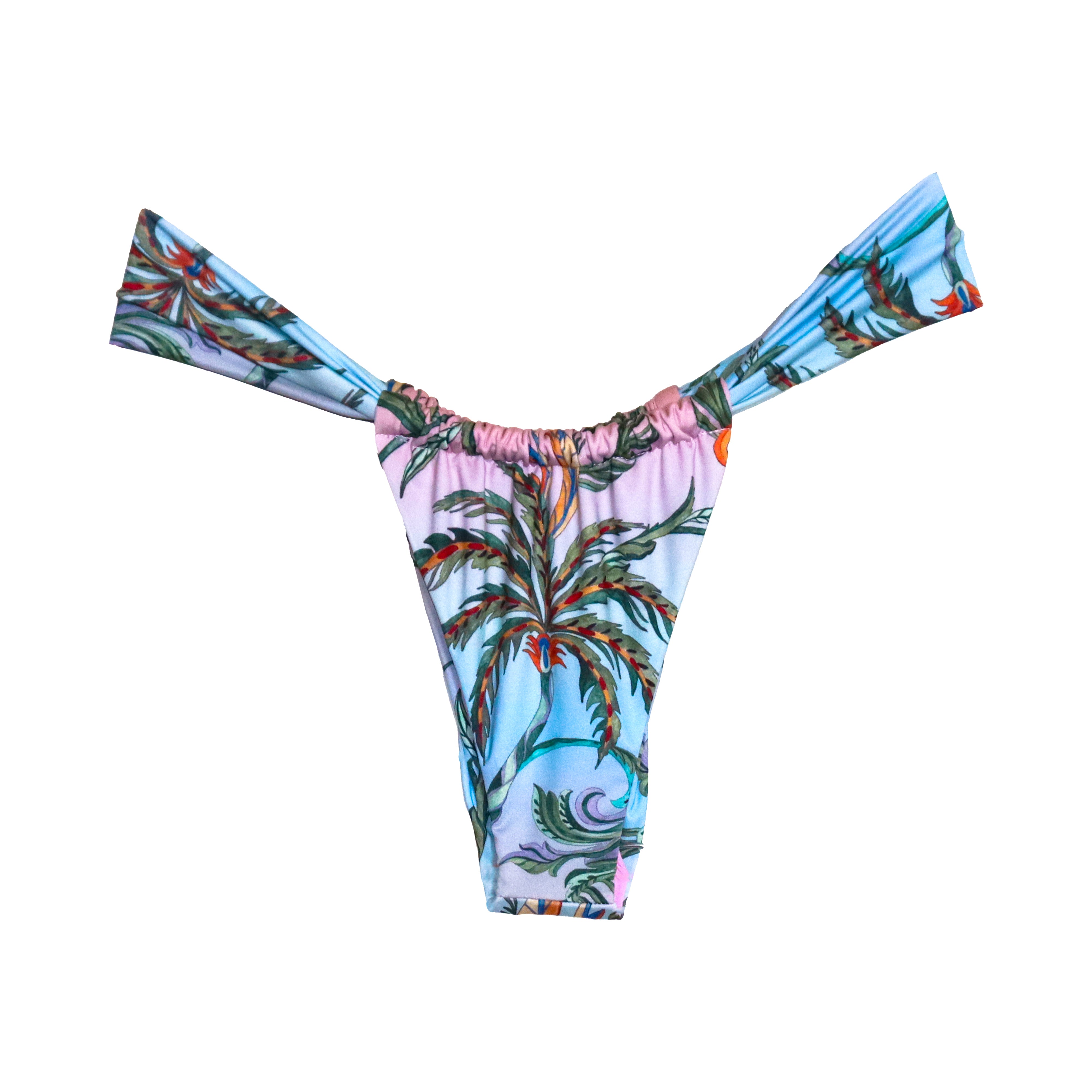 Our best-selling and favorite bottom, which you can wear as a regular thong or as an adjustable tie-side style, now available in a palm-tree print over a pastel background!